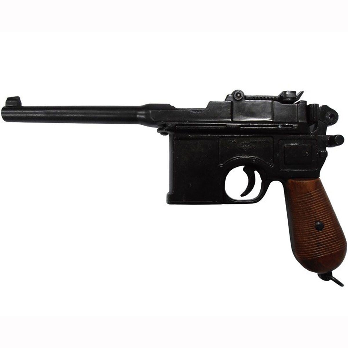Riproduzione pistola realizzata in metallo, con manico e calcio in legno, con meccanismo simulatore per carico e fuoco. All'interno della vasta gamma di armi leggere, il C-96 ha l'onore di mostrare il soprannome di "classico", noto anche come "manico di scopa". Era una pistola semiautomatica prodotta in Germania dal 1896 al 1937, creata dal geniale Peter Paul Mauser. Questa pistola semiautomatica, con oltre un secolo di storia, ha un design estremamente funzionale e pratico che l'ha portata ad essere riconosciuta come una delle migliori armi al mondo.